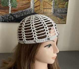 Chapeau Toque hat hut hoed hattur gorro chapéu cappello handmade Blanc paillettes perles argentées Taille unique Fait main crochet