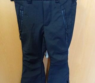 Noir, doublure polaire, scratch réglable ceinture, pressions, poches, passants ceinture, double fermeture bas de jambe, longueur 65 cm, taille 23 cm, hanches 29 cm, entrejambes 18