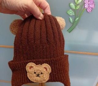 Marron, pompons, oreilles d'ours, pompons, écusson, largeur 19 cm, extensible 25 cm, hauteur 17,5 cm, doublé polaire. Transaction/envoi via le site, retrait possible proche de Mill