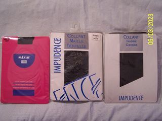 JE VENDS PLUSIEURS COLLANTS NEUFS MARQUE IMPUDENCE ET MIZAR collant impudence maille dentelle 60 deniers super t3 NOIR 12 e collant fantaisie chevrons IMPUDENCE TAILLE 3 noir
