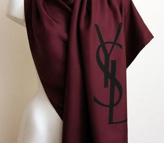 Etole foulard de soie bordeaux YVES SAINT LAURENT soie 100% bords roulotés main logo oversize YSL 157 cm x 83 cm TBE Envoi possible RMP métro Corentin Celton