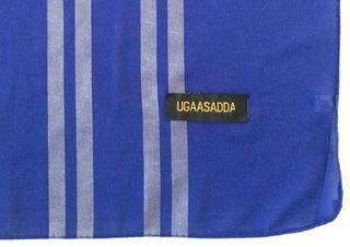 Très beau foulard Ugaasadda réversible couleur bleu roi uni ou avec rayures argentées en excellent état (quasiment neuf) Matière : 100 % polyester. Longueur 170 cm x largeur 70 c