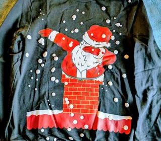 Déguisement complet Père Noël composé d'une large veste à manches longues et capuche, d'un pantalon, d'une barbe et d'une perruque. Le tout en bon état, fraîchement lavé et repassé