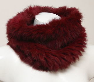 Col en fourrure YVES SALOMON fourrure véritable lapin rouge bordeaux H 24 cm TBE Envoi possible RMP métro Corentin Celton