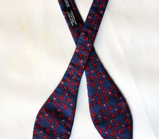 N?ud papillon soie Trident HERMES soie motif trident rouge et fond marine à nouer soi même H 6 m x L 90 cm Envoi possible RMP métro Corentin Celton