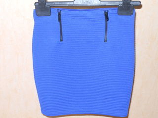 Jupe bleue taille S/36, marque originale BERSHKA neuve. Jupe prêt du corps en élasthanne, taille élastique. Longueur de la jupe : 39 cm. Visible à RENNES ou envoi possible à vos fr