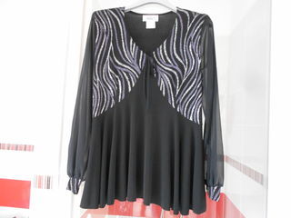 Joli haut manches longues avec épaulettes, Taille 38/40, M/L, AFIBEL. Neuf. Noir avec motifs violet et argent sur le devant, il y a un petit lien pour faire un n?ud devant. Les man