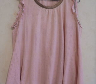 Très jolie tunique, de la marque originale Etam, à porter en tunique, en petite robe ou en sur-maillot, fonds rouge rayé, agrémentée de fils dorés, encolure en "V", manches l
