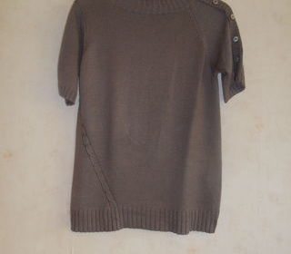 Très joli pull, de la marque "Comptoir bohème par fil d'écume", de couleur marron, col montant double, 1/2 manches, boutonnage sur une épaule par boutons imitation nacre, bor