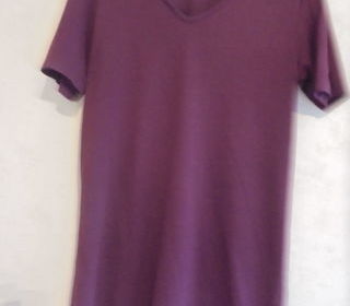 Tee-shirt, de la marque originale Bershka, de couleur bordeaux chiné, col en "V", 1/2 manches, en 100 % coton, longueur : 73,5 cm, taille XS. Excellent état. A récupé