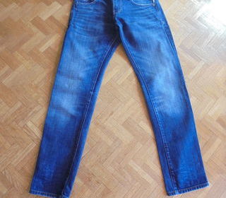Jean bleu, de la marque originale Freeman T. Porter, fermeture éclair + bouton, de nombreux détails devant et au dos, 3 poches devant, 2 poches derrière, 5 passants, taille