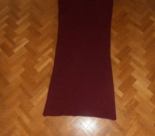 Pyjama, de la marque originale Galeries Lafayette, en velours, haut rayé bordeaux, gris et bleu, encolure, bords des manches et base gris uni, longueur : 75 cm, pantalon droi