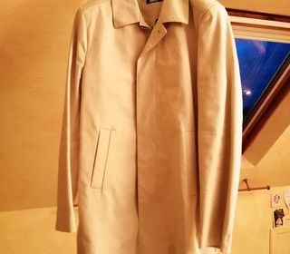Très belle gabardine couleur beige mi-long avec liseré marron Manche avec boucle de serrage ,avec ceinture 2 poches latérales Fermeture avec 5 boutons ,col montant