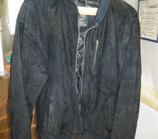Blouson en Dain Noir. Très peu servi, doublure matelassée et très chaude. Col, poignets et bas du blouson en coton élastiqué. Épaulettes : 24cm, largeur poitrine : 120cm, Épaul