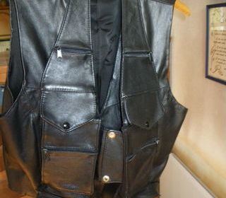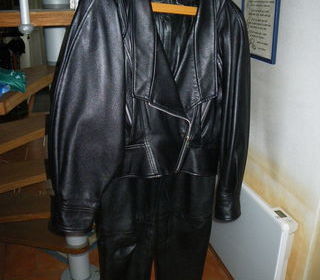 Blouson en Cuir Noir Très fin. Hauteur du blouson avec la taille : 54cm, tour du bas du blouson fermé : 90cm, largeur de la ceinture : 9cm, largeur de la poitrine : 100cm, longueu