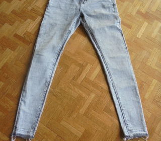 Jean homme, de la marque originale Bershka, forme super skinny fit, de couleur gris neige, fermeture par fermeture éclair et bouton, 3 poches devant, 2 poches derrière, 5 pa