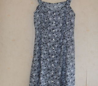 Très jolie robe d'été, fluide, légère et infroissable, à bretelles réglables par boutons devant et au dos, entièrement boutonnée devant, pinces poitrine, très belle ampleur,
