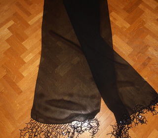 Etole en voile noir, extrémités terminées par une multitude de perles de rocailles noires, très chic, dimensions : 30 cm x 166 cm sans les perles, 30 cm x 192 cm avec les per