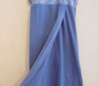 Chemise de nuit, de la marque originale Etam, de couleur bleu jean, forme cache-c?ur pour le haut, forme faux portefeuille pour le bas, encolure en " V " à rayures, bord en cr