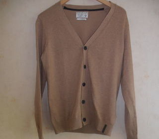 Gilet, de la marque originale Premium de Jack And Jones, manches longues, de couleur camel, coupe droite, classique et élégante, boutonné sur le devant, col en V, maille fin