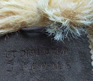 Veste en daim et fausse fourrure au design original , tres tendance par sa couleur marron. Découpe décalée dans le bas. Taille 40. Etiquette imprimée "Et Dieu créa la Femme". Com