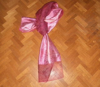 Très jolie écharpe, très chic, de couleur rose, intercalant le satin et le voile, satiné et irisé. dimensions : 35 cm x 140 cm. Excellent état. A récupérer sur place o