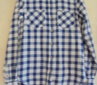 Chemise à carreaux, de la marque originale Springfield, manches longues de couleur bleue et blanche, boutonnage par boutons style "corne" sur le devant, double boutonnage aux