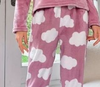 Neuf. Ensemble Pyjama en Flanelle Confortable pour Femmes avec Broderie de Moutons Mignons - Manches Longues & Pantalon à Imprimé Nuages, Col Rond, Lavable en Machine - Vêtements