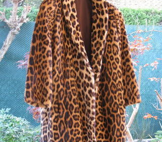 manteau fourrure leopard , année 1960, CONFECTIONNER PAR UN COUTURIER,PREMIER OUVRIER DE FRANCE DE NICE , TRES BONNE ETAT, TRES PEU SERVIE DOUBLURE YVE ST LORENT( VENT AU PLUS