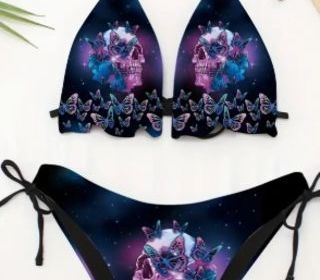 Neuf. Maillot de bain Imprimé Papillon Tête de Mort. Taille M