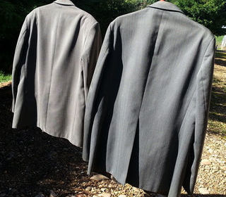 Lot de 2 vestes: _Veste de costume en pure laine vierge ZENITH en bon état, made in France N° 02043. Tissus contrôlé Woolmark 11.9. Dimensions : Hauteur 76 cm , col 6, total 82.