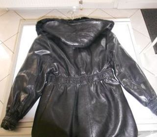 manteau 3/4 froncé à la taille capuche - poches latérales entièrement doublé froncé à la taille et aux poignets cuir d'agneau et fourrure taille 40 etat neuf