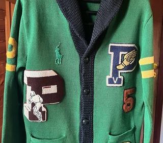 Pull - Cardigan Letterman en coton Polo Ralph Lauren Cardigan Letterman en coton vert Polo Ralph Lauren Authentique et Rare Pull cardigan à col chà¢le Ralph Lauren inspiré de l'u