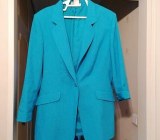 Veste femme - Turquoise - Taille 48 - Un peu longue - 2 poches à l'avant - 1 bouton - Prix 8 €