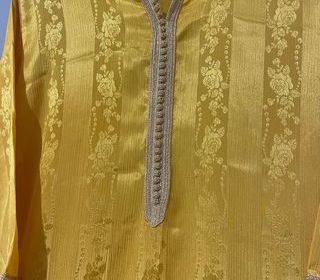 Magnifique tenue en tissu Johara Jaune, confection par un maître tailleur Taille L Occasion excellent état
