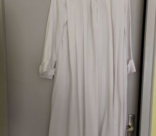 Aube de communion blanche bon état, pour adolescente, taille 38-40, longueur de l aube 120 cm, longeur de manche avec revers, 60 cm.