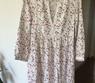Robe fleurie manches 3/4 longueur genoux taille 2 en parfait état. remise en main propre