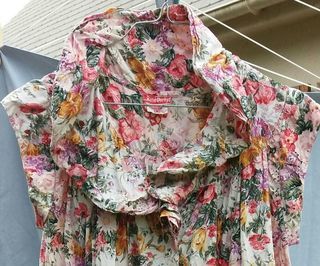 Robe légère de grande marque René Dhéry en bel imprimé. La Taille "M" correspond plutôt à un 40/42 minimum - 1 Robe TRÈS évasée en viscose, avec des poches de chaque côté, dans la