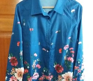 Chemisier en soie NEUF taille 40 - 42, très féminin, avec jolies fleurs délicates sur le devant et sur les manches, dos uni, coupe droite. AUCUN ENVOI, à venir chercher sur Préf