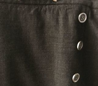 Jupe droite portefeuille Trois gros boutons décoratifs sur le côté. Côtés élastiqués Mesures à plat : - taille : 40 cm - hanches : 56 cm - hauteur : 71 cm
