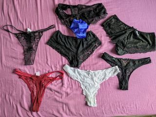 Nombreux strings et tangas tous en très bon état et de taille 38 40.selon les modèles. Photos détaillées sur demande ( pas de photos portées) Je réponds à tous les messages
