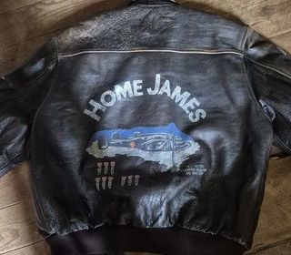 Blouson en cuir Vieilli Chevignon avec "Paint War" Etat neuf. Cuir bovin. Taille L.