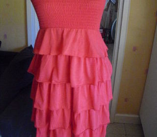VEND robe bustier a volant corail NAF NAF TAILLE M 100% polyester longueur de la robe (mesure prise du dos) 70 cm environ possibilité d'envoi me contacter par téléphone ou SMS