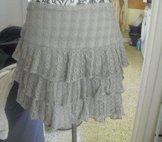 vend JUPE a volants tout DENTELLES taupe CAMAIEU T36/38 se ferme a l aide d'un zip sur coté jupe doublée 95% COTON 5% ELASTHANNE longueur de la jupe 40 cm environ possibili