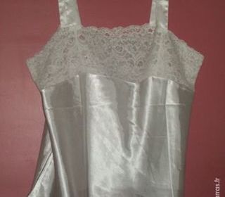 vends superbe caraco satin marque bleu bonheur blanc avec large dentelle COMME NEUF possibilité d'envoi