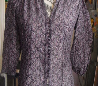 vend chemisier voile transparent a motifs NEUVE ZARA taille S couleur violet fonçé prune a motifs col mao se ferme a l aide de petits boutons violet a encoches manches évasée