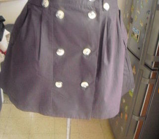 vend jupe marron chocolat NEUVE TAILLE 36 se ferme a l aide de 4 gros boutons nacrés rangée de boutons décoratifs sur le devant de la jupe 2 poches a rabat sur chaque coté de l