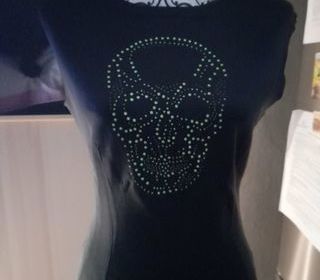 VEND TOP NOIR sans manche tete de mort fluoresescente, NEUF etiquetté 1060 CLOTHES T38 très belle qualité de tissus , très douce, touché velour motif tete de mort sur le devant