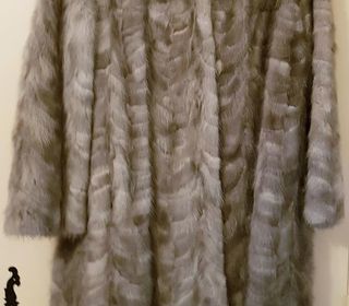 Très beau manteau en pattes de vison gris, fourrure véritable, fabriqué sur mesure par un fourreur de Lyon Petit col droit Fermeture invisible par agraphes spéciales fourrure B