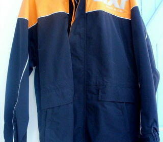 Veste de travail / blouson / parka NEUF avec étiquette Couleur principale noire Haut orangé avec mention "SIXT rent a car' Une capuche au niveau de la nuque et qui se refer